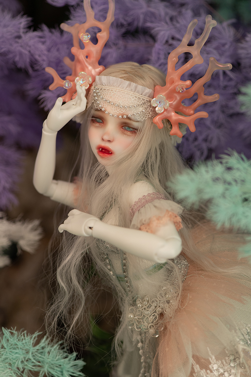 Sleeping Head / Sleeping Head Makeup Kyma Vampire Dreaming(A) / Kyma Vampire Dreaming(A) Makeup Nanuri Head Nanuri Elf Head Designer’s Complete (Side/Tail Fin, Coral Horns, Shoes and Wings painted) (Please note that actual painting work may differ from the painting shown in the promotional pictures. Painting work may peel off around the areas of action range. ) |